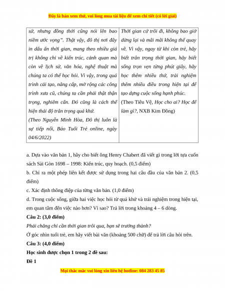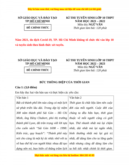 BỨC THÔNG ĐIỆP CỦA THỜI GIAN Câu 1: (3,0 điểm)
