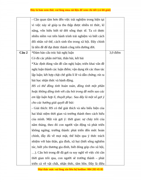 và trải nghiệm trong hiện tại. Một vài gợi ý: 1,0 điểm