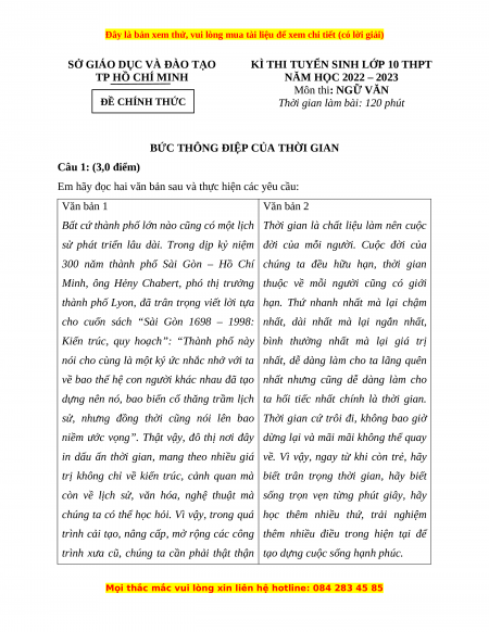 Đề chính thức Ngữ văn vào 10 TP Hồ Chí Minh năm 2022 - 2023