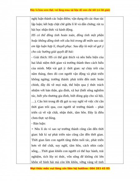 + Nêu lí do vì sao sự trưởng thành cũng cần đến thời