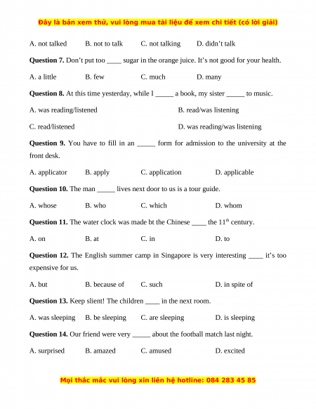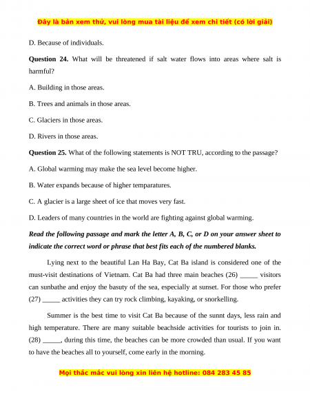Đây là bản xem thử, vui lòng mua tài liệu để xem chi tiết (có lời giải)