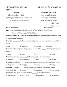 Đề chính thức Tiếng Anh vào 10 Hà Nội năm 2023