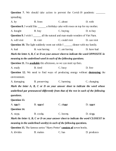 Họ và tên thí sinh: …………………………………………..S báo danh ố :………. L u ý: ư