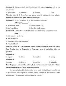 L u ý:ư - Thí sinh không đ c s d ng t đi n và b t kỳ lo i tài li u nào.ượ ử ụ ừ ể ấ ạ ệ