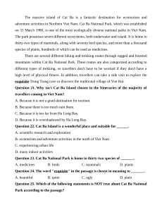 Question 23. Cat Ba National Park is home to thirty-two species of _______. A. medicines B. birds C. mammals D. plants