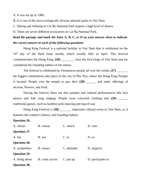 Hung King Festival is (30) _______ important cultural event in Viet Nam, as it