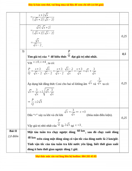 (thỏa mãn điều kiện) thay vào ta có: 0,25 . 0,25