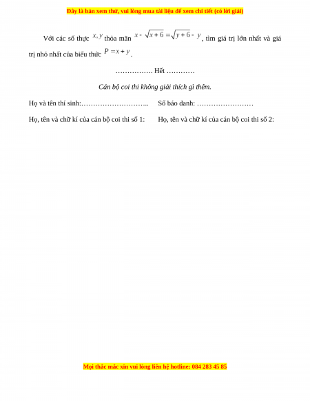 Đây là bản xem thử, vui lòng mua tài liệu để xem chi tiết (có lời giải)