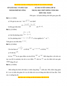 Đề chính thức Toán vào 10 TP Đà Nẵng năm 2016 - 2017
