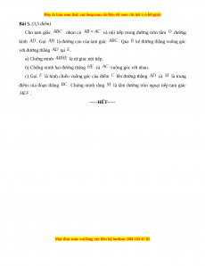 là tâm đường tròn ngoại tiếp tam giác . -----HẾT-----