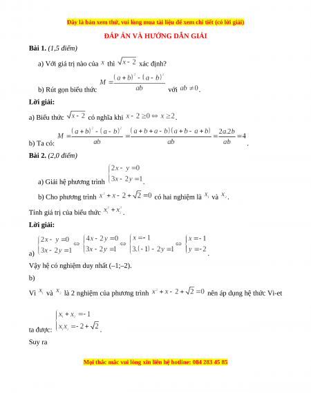 Đây là bản xem thử, vui lòng mua tài liệu để xem chi tiết (có lời giải)