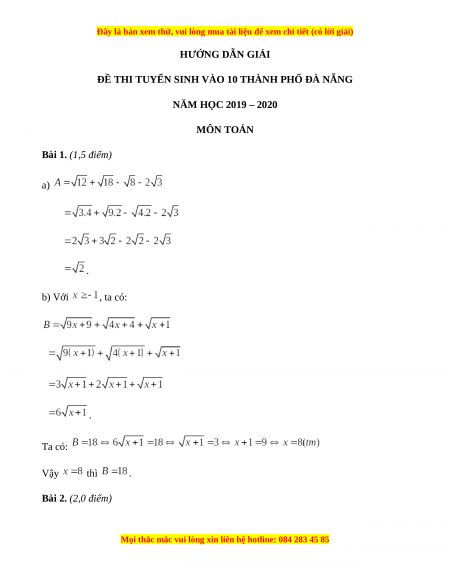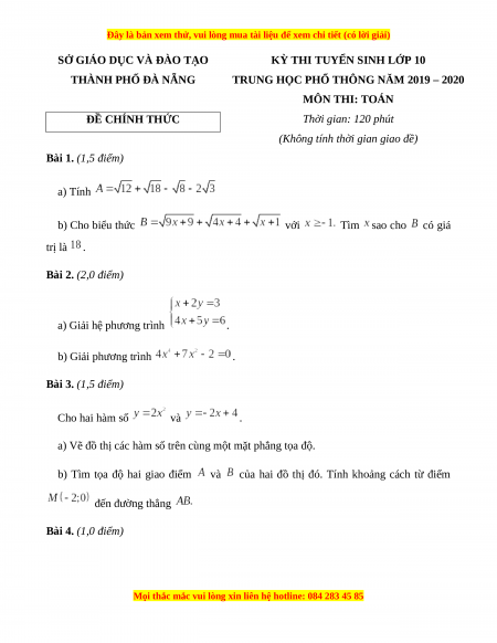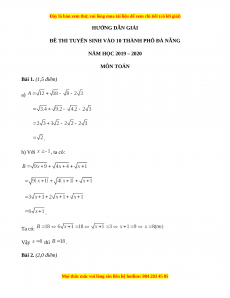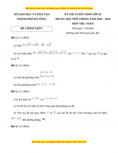 Đề chính thức Toán vào 10 TP Đà Nẵng năm 2019 - 2020