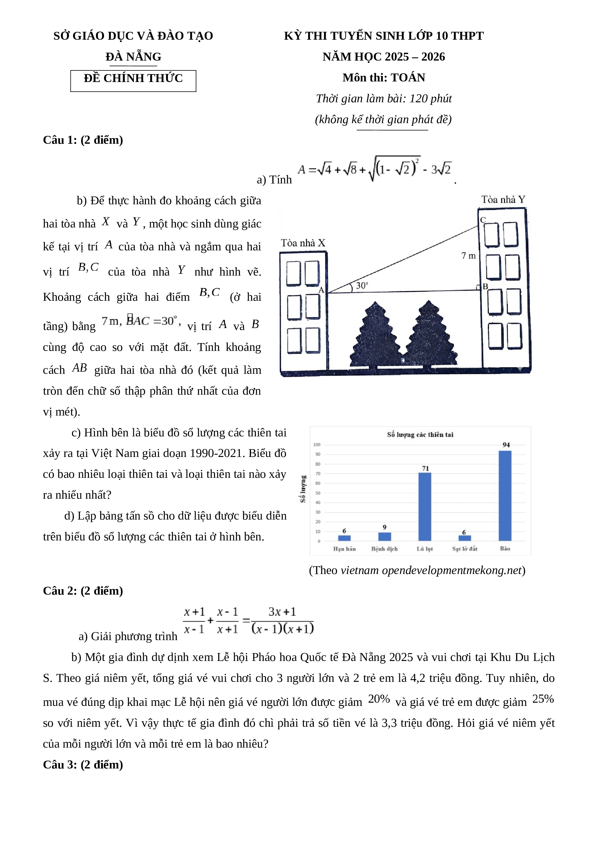 Đề chính thức Toán vào 10 TP Đà Nẵng năm 2025 - 2026