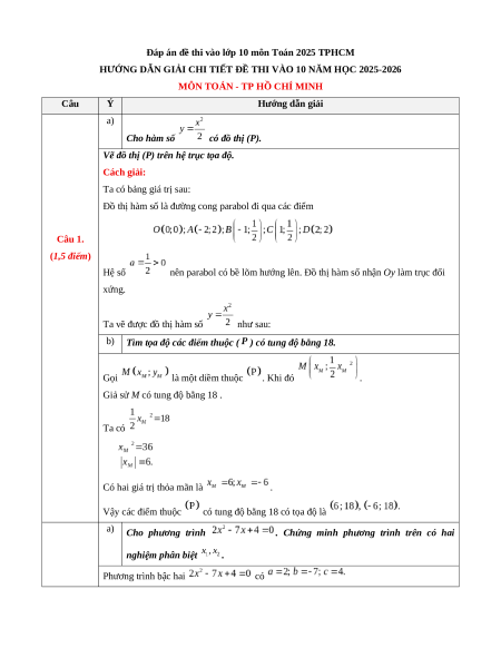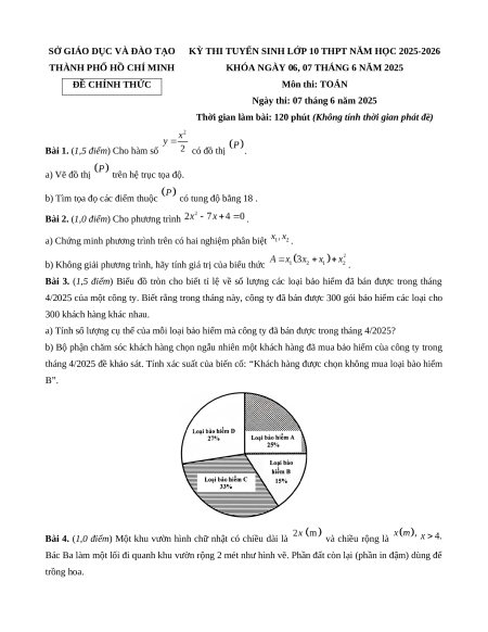 Đề chính thức Toán vào 10 TP Hồ Chí Minh năm 2025 - 2026