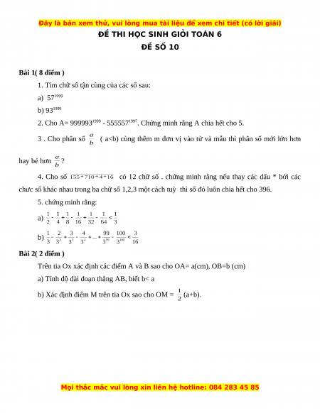 ĐỀ THI HỌC SINH GIỎI TOÁN 6 ĐỀ SỐ 10 Bài 1( 8 điểm )