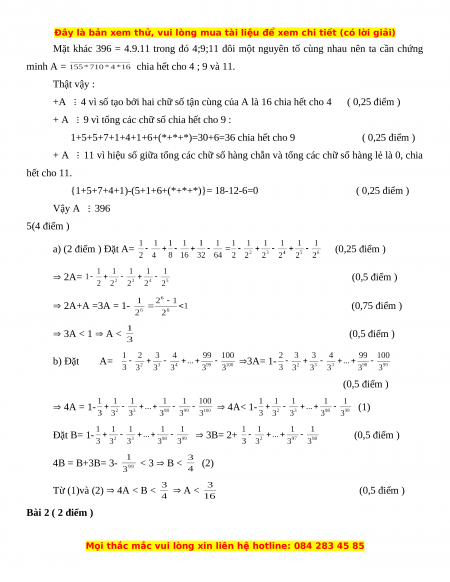 chưc số khác nhau trong ba chữ số 1,2,3 một cách tuỳ thì số đó luôn chia hết cho 396. 5. chứng minh rằng: a) b) Bài 2( 2 điểm )