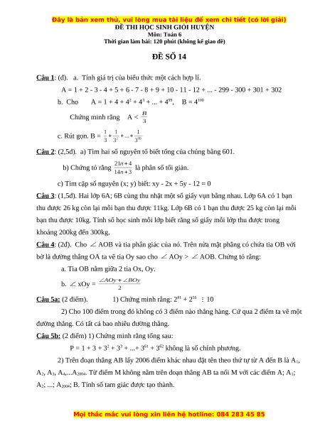 - Bộ 14 đề HSG Toán 6 của các trường Trung học Cơ sở, các Phòng Giáo dục và Đào tạo, các Sở Giáo dục và Đào tạo trên toàn quốc, có đáp án và lời giải chi tiết. Hỗ trợ học sinh lớp 6 trong quá trình ôn tập chuẩn bị cho kỳ thi chọn học sinh giỏi Toán 6 các cấp: cấp trường / cấp huyện / cấp tỉnh / cấp Quốc gia.