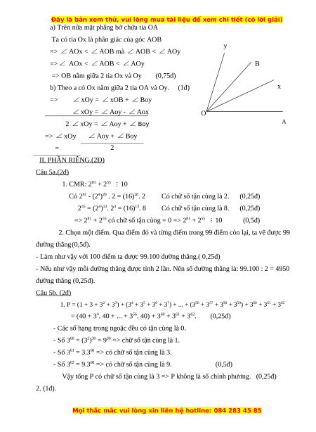 b) Theo a có Ox nằm giữa 2 tia OA và Oy. (1đ) x => xOy = xOB + Boy xOy = Aoy - Aox O 2 xOy = Aoy + Boy A => xOy Aoy + Boy = 2 II. PHẦN RIÊNG.(2Đ) Câu 5a.(2đ) 1. CMR: 281 + 255 10