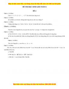 ĐỀ THI HỌC SINH GIỎI TOÁN 6 ĐỀ 4 Câu 1. ( 2,0 điểm)