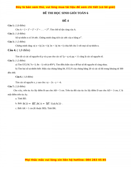 ĐỀ THI HỌC SINH GIỎI TOÁN 6
