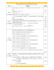4n +1= 20k + 5 chia hết cho 5 tích chia hết cho 5. 0,25 Câu 3