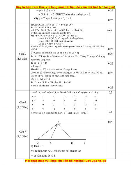 b) Tìm hai số tự nhiên biết: Hiệu của chúng bằng 84, ƯCLN của chúng bằng 28 và các số đó trong khoảng từ 300 đến 440. Câu 6. ( 1,0 điểm)
