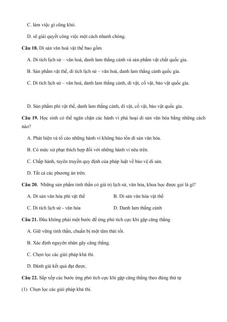 Câu 7: Những sản phẩm vật chất và tinh thần có giá trị lịch sử, văn hóa, khoa học được lưu