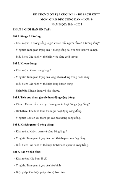 Đề cương Cuối kì 1 GDCD 9 Kết nối tri thức (có lời giải)