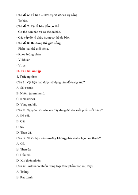 Chủ đề 4: Một số vật liệu, nhiên liệu, nguyên liệu, lương thực-thực phẩm