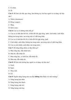 Câu 5: Để làm cầu bắc qua sông, làm đường ray tàu hỏa người ta sử dụng vật liệu nào? A. Nhôm (aluminum). B. Đồng (copper). C. Thép. D. Kẽm (zinc).