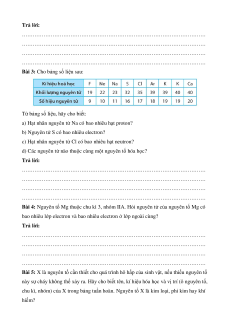 Bài 4: Nguyên tố Mg thuộc chu kì 3, nhóm IIA. Hỏi nguyên tử của nguyên tố Mg có