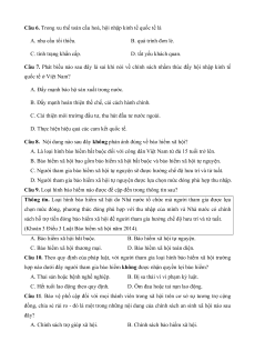 Câu 6. Trong xu thế toàn cầu hoá, hội nhập kinh tế quốc tế là A. nhu cầu tối thiểu. B. quá trình đơn lẻ. C. tình trạng khẩn cấp. D. tất yếu khách quan.