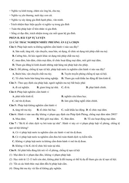 Câu 8 : Số phát biểu đúng khi nói về về phòng, chống tệ nạn xã hội