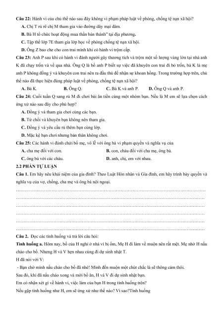 + Về gia đình: giáo dục, quản lý, quan tâm chăm sóc các thành viên.