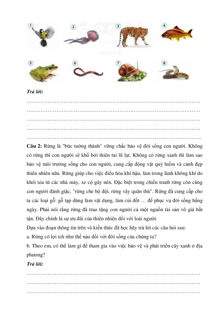 Câu 2: Rừng là "bức tường thành" vững chắc bảo vệ đời sống con người. Không