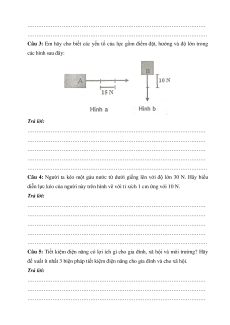 Câu 3: Em hãy cho biết các yếu tố của lực gồm điểm đặt, hướng và độ lớn trong các hình sau đây: Trả lời: