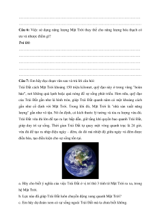 Câu 7: Em hãy đọc đoạn văn sau và trả lời câu hỏi: