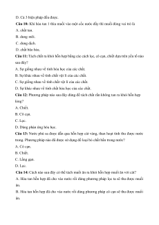 Câu 11: Tách chất ra khỏi hỗn hợp bằng các cách lọc, cô cạn, chiết dựa trên yếu tố nào sau đây?