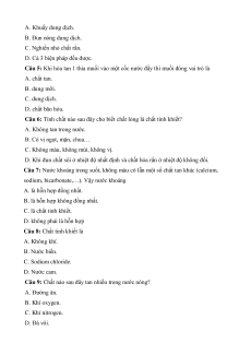Câu 6: Tính chất nào sau đây cho biết chất lỏng là chất tinh khiết? A. Không tan trong nước.