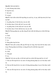 Câu 11: Tách chất ra khỏi hỗn hợp bằng các cách lọc, cô cạn, chiết dựa trên yếu tố nào sau đây?