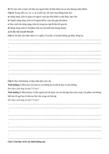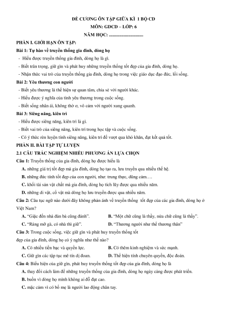 Câu 1: Truyền thống của gia đình, dòng họ được hiểu là