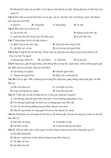 Câu 18. Biểu nào dưới đay thể hiện lòng yêu thương con người? A. Thù hận.
