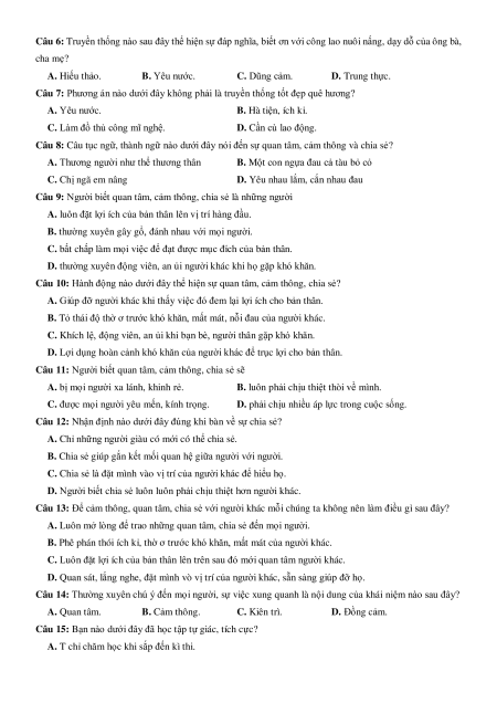 Câu 9: Người biết quan tâm, cảm thông, chia sẻ là những người