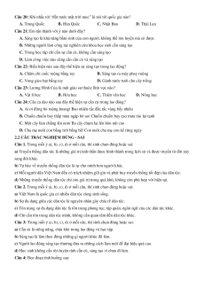 Câu 20: Khi nhắc tới “đất nước mặt trời mọc” là nói tới quốc gia nào? A. Trung Quốc B. Hàn Quốc C. Nhật Bản D. Thái Lan