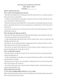 ĐỀ CƯƠNG ÔN TẬP GIỮA KÌ 1 BỘ CTST