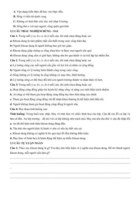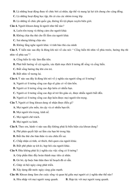 Câu 10. Khoan dung làm cho cuộc sống và quan hệ giữa mọi người có ý nghĩa như thế nào?