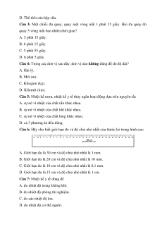 Câu 4: Trong các đơn vị sau đây, đơn vị nào không dùng để đo độ dài? A. Hải lý. B. Mét (m). C. Kilogam (kg). D. Kilomét (km).