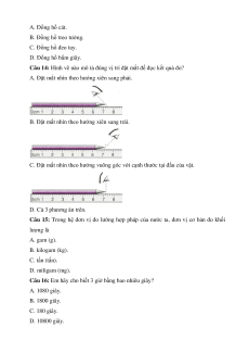 Câu 9: Trong hệ thống đo lường hợp pháp ở Việt Nam thì đơn vị cơ bản đo thời gian là A. giờ. B. ngày. C. giây. D. tuần.