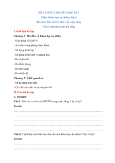 Đề cương Giữa kì 1 KHTN 6 Kết nối tri thức (nối tiếp)