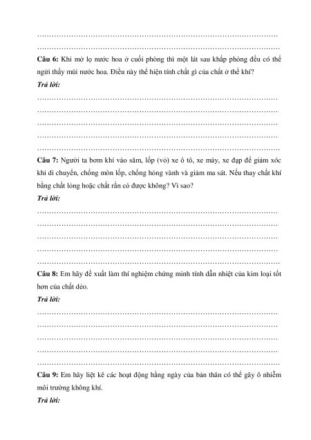 Câu 7: Người ta bơm khí vào săm, lốp (vỏ) xe ô tô, xe máy, xe đạp để giảm xóc